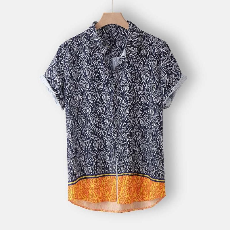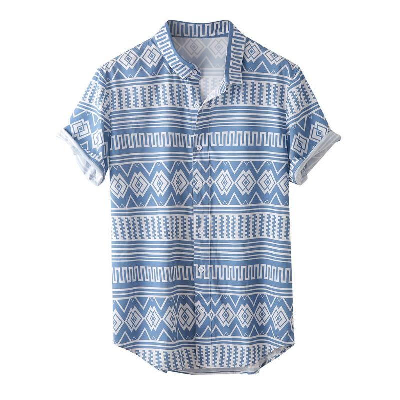 Men S Shirt Casual Print Short Sleeve Button Down Round Hem Loose