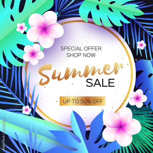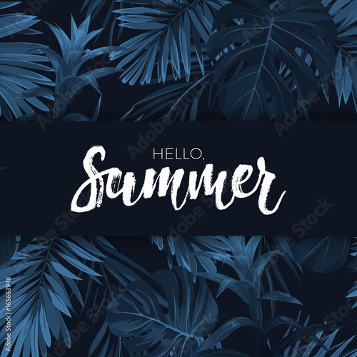 Tropical Hawaiian Background With Jungle Palm Tree Leaves Exotic