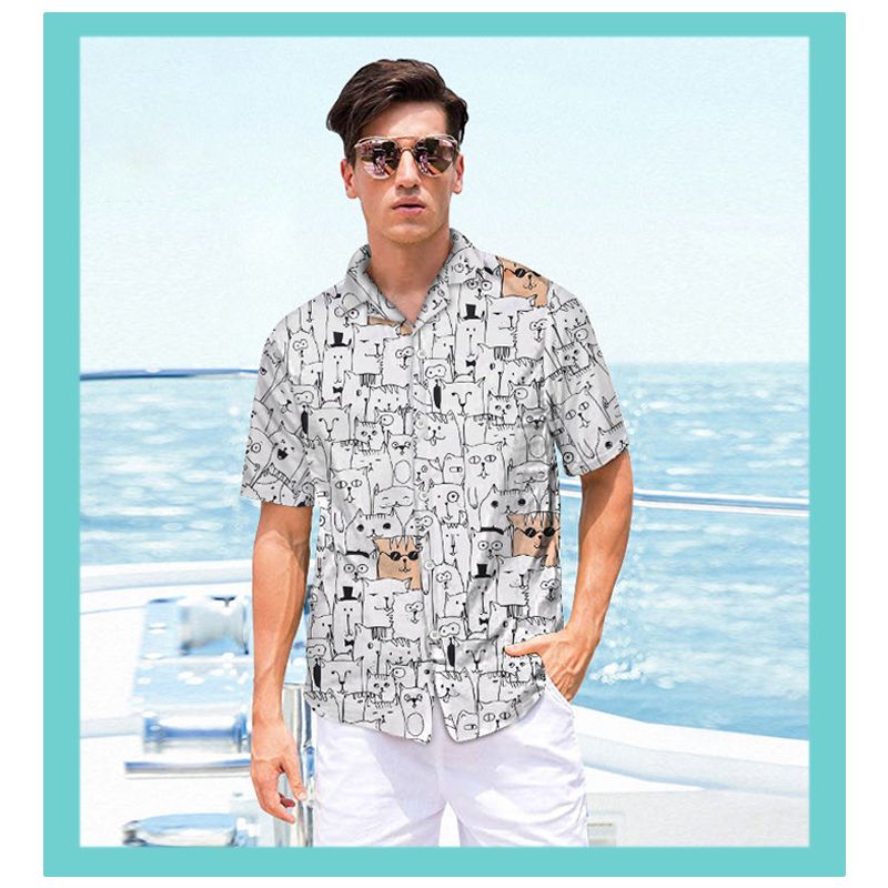Funny Cartoon Dinosaur Printed Hawaiian Shirts Men Fashion Casual