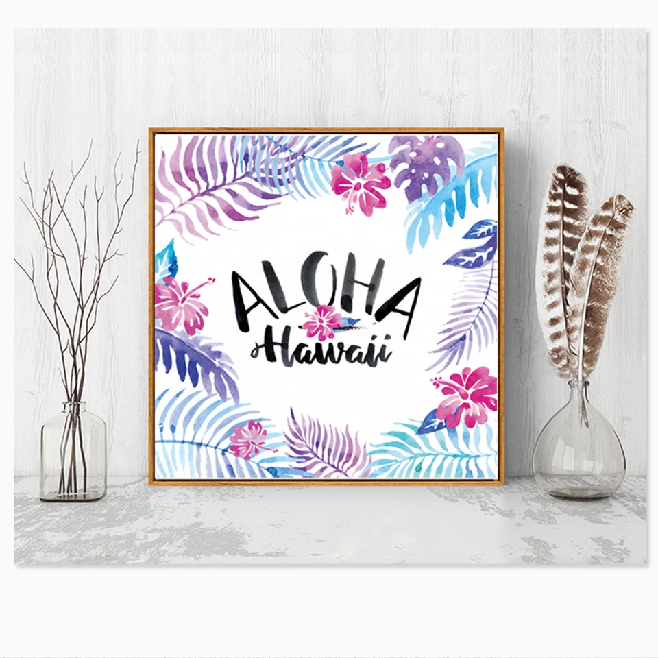 Vector Stock Aloha Hawaii Leaves Flower Blue Background Vector