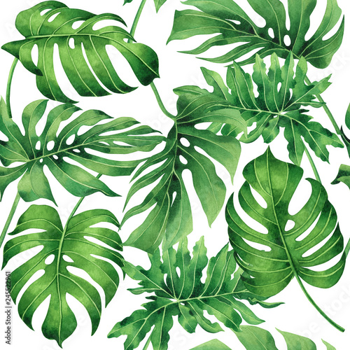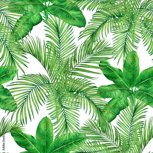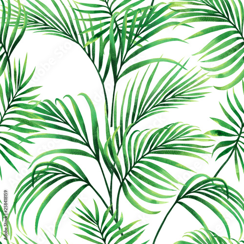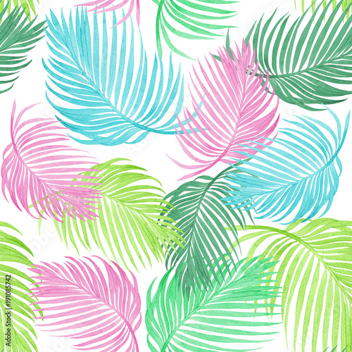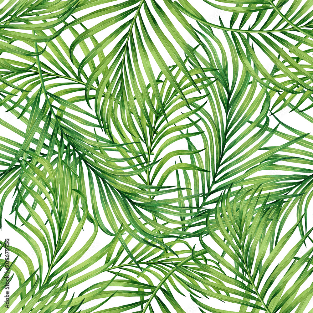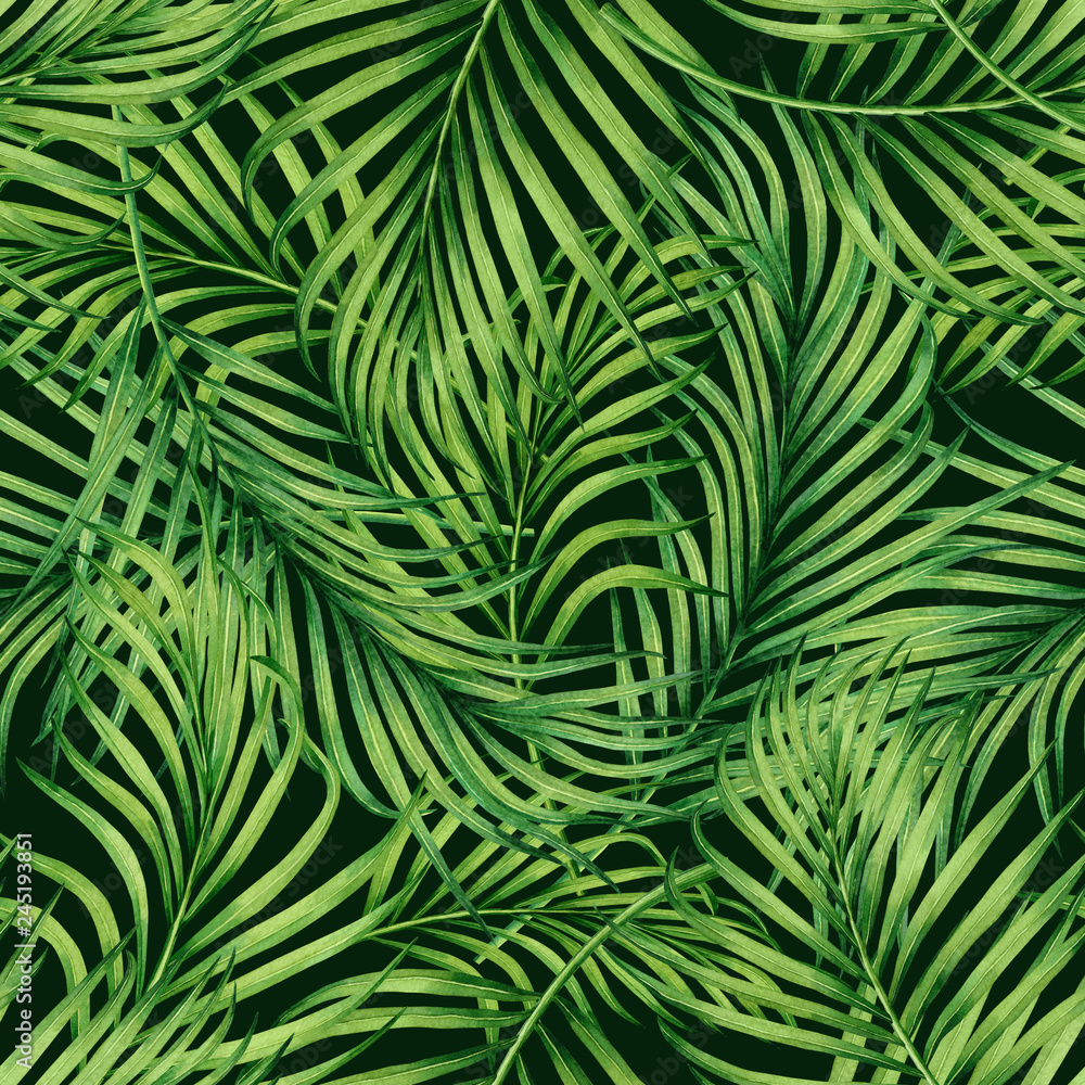 Watercolor Painting Colorful Tropical Palm Leafgreen Leaves