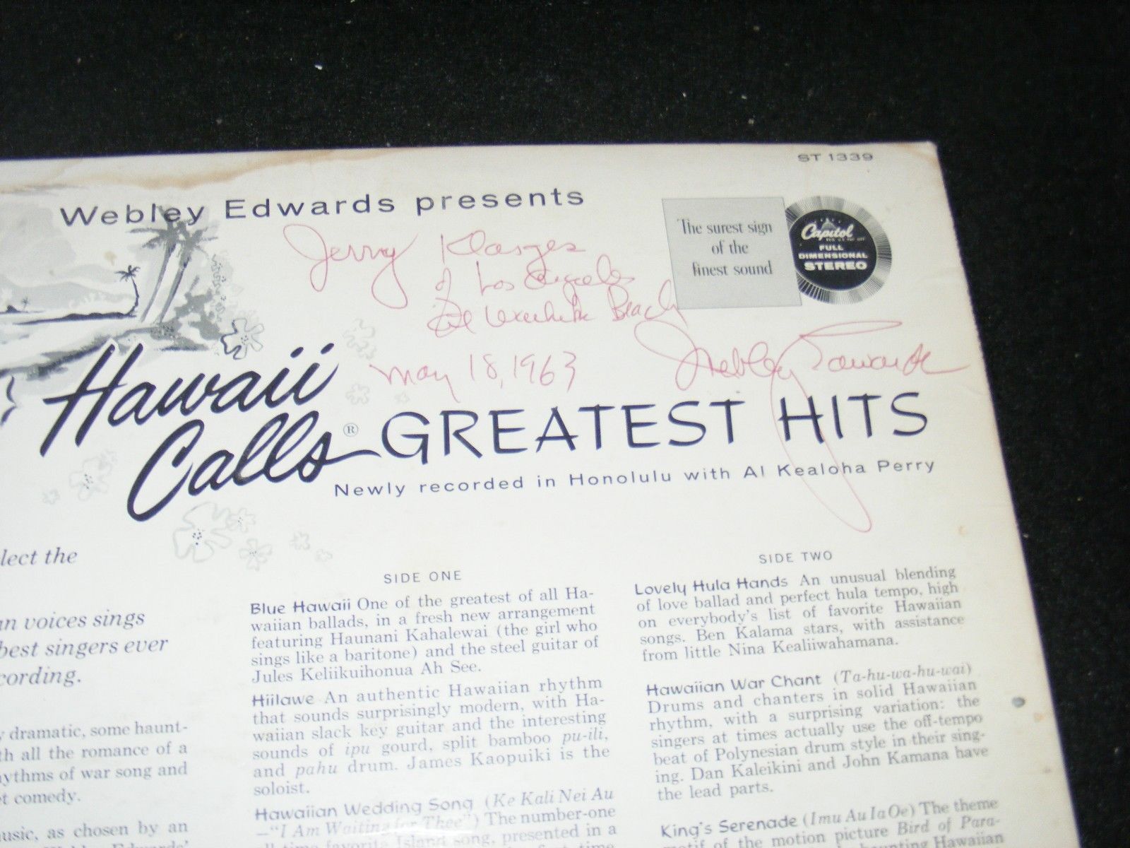 Edwards Webley Hawaii Calls Greatest Hits 1960 Capitol St