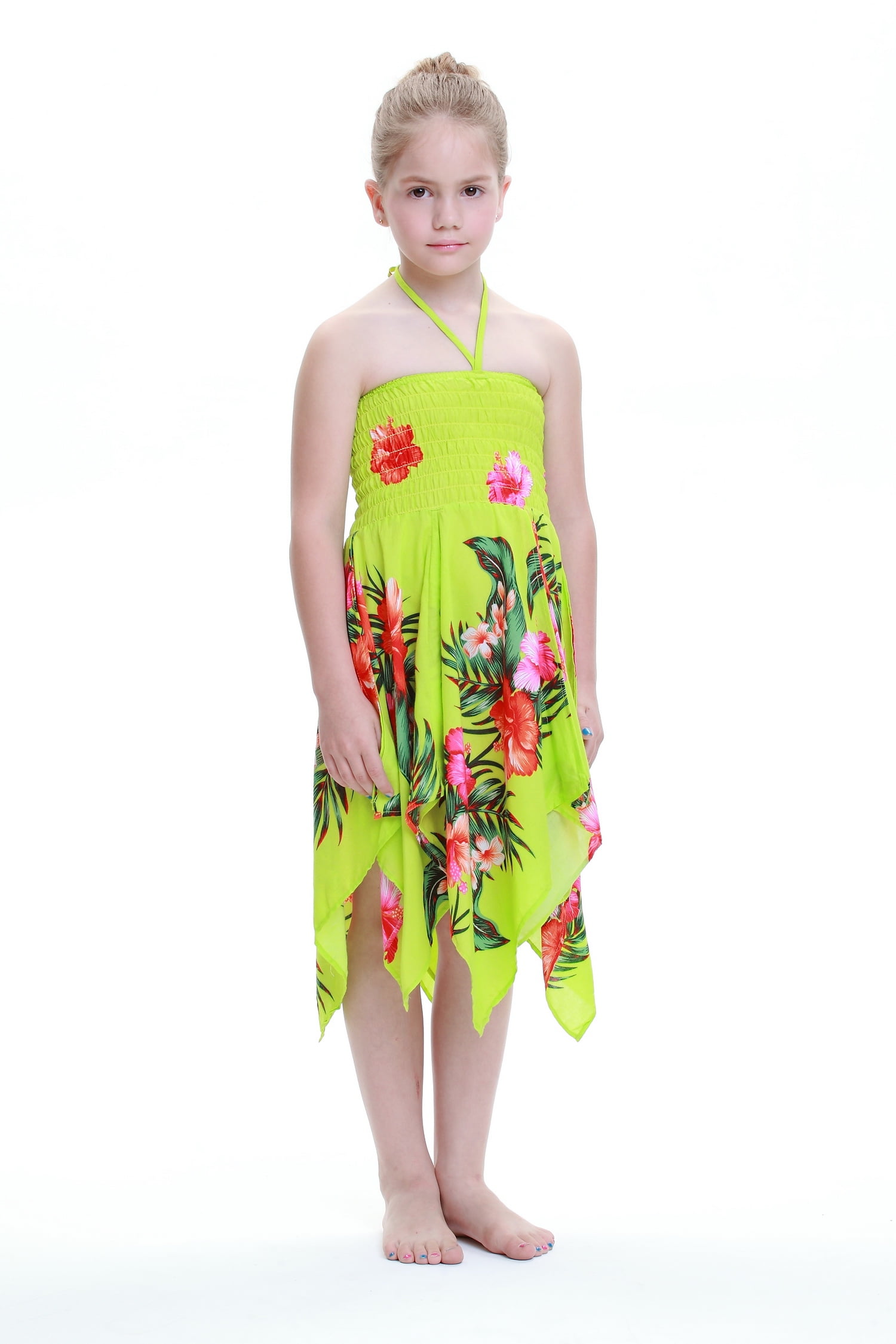 Hawaii Hangover Girl Gypsy Uneven Button Hawaiian Luau Dress In Lime Green Floral 4 Walmart Com