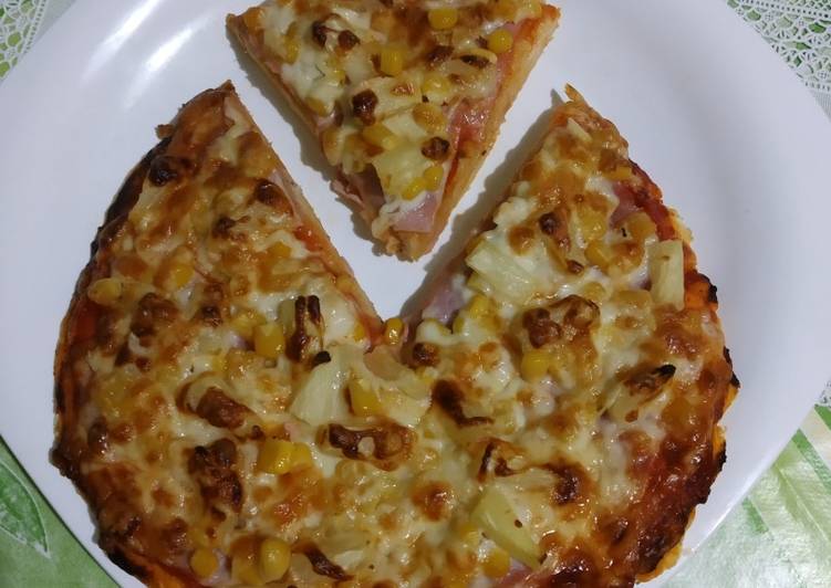 Top with cheese pineapple and ham. This crowd pleasing pizza recipe starts with my homemade pizza crust and is finished with a sprinkle of crispy bacon. Heat a large skillet over high heat and place tortilla into the hot skillet.