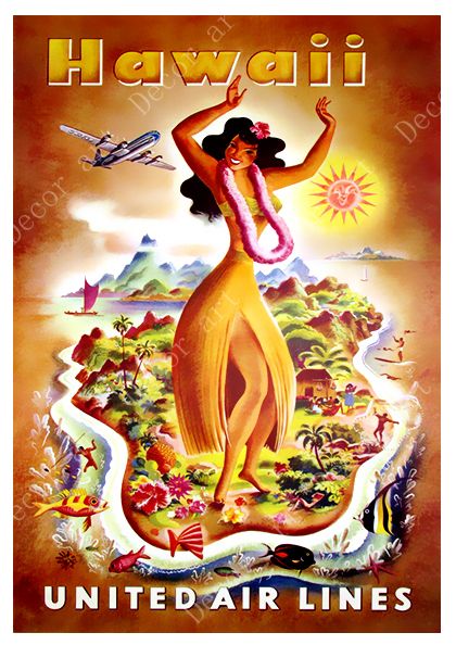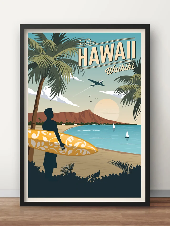 Visit Hawaii Waikiki Summer Holiday Travel Posters Retro Vintage
