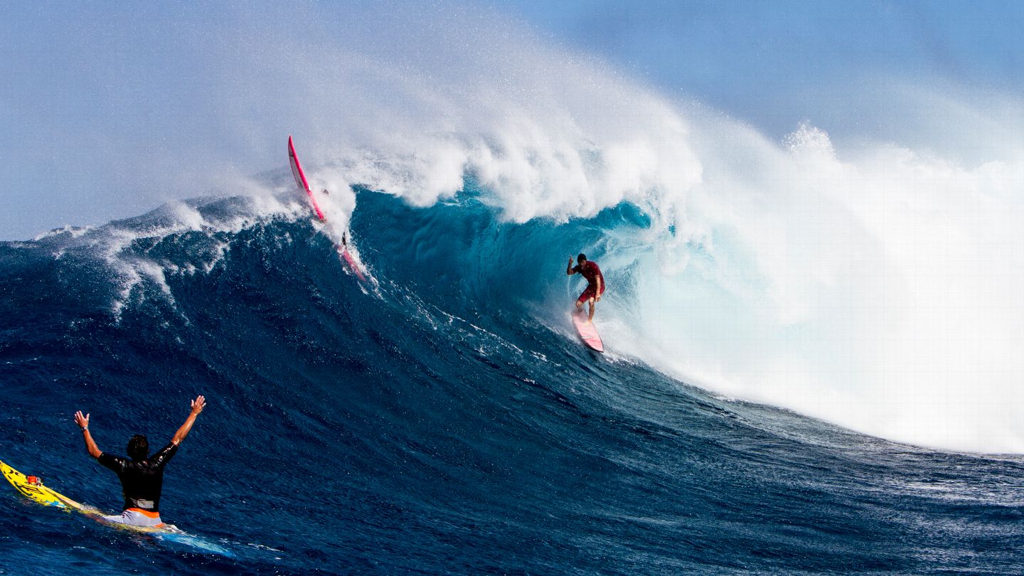Hawaii Maui Peahi Jaws Helicopter Two Surfer Ride A Giant Wave