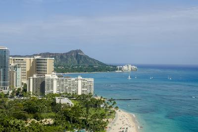 Tourists Watch And Photograph Sunset On Waikiki Beach Honolulu