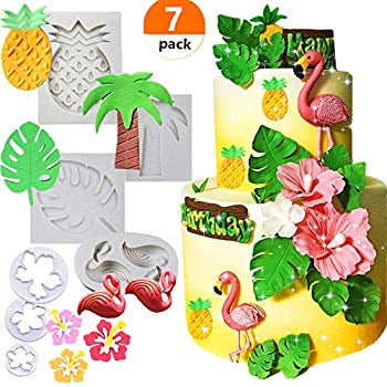 Set Of 7 Tropical Theme Cake Fondant Mold Flamingo Pineapple Palm Leaves Coconut Tree Flowers Candy Chocolate Mold For Hawaiian Summer Luau Cake Decorating Walmart Com