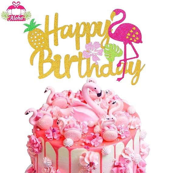 Flamingo Cake Topper Happy Birthday Sign Cake Pick Hawaiian Luau Tropical Pineapple Theme Kids Boys Girls Party Supplies Gold Glitter Decoration Amazon Com Grocery Gourmet Food