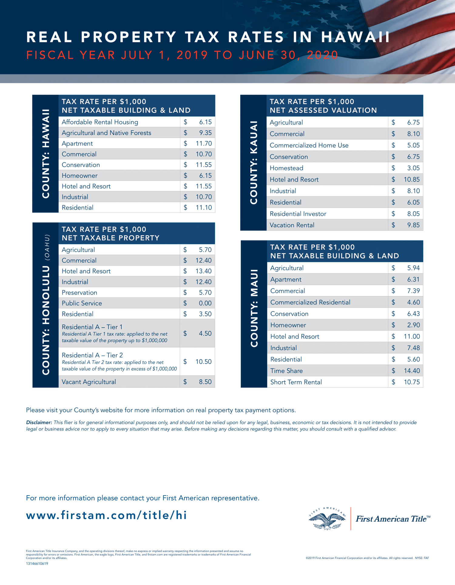 Update From First American Title Hawaii Real Property Tax Rates