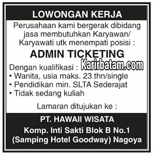 Lowongan Kerja Pt Hawaii Wisata Lowongan Kerja Batam 2018 www.karirbatam.com