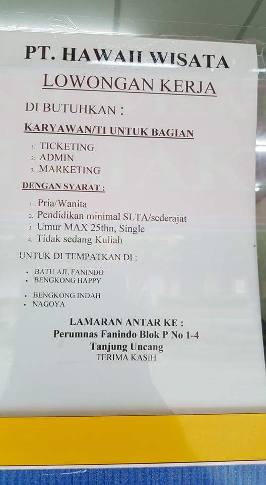 Pt Hawaii Wisata Posisi 1 Admin 2 Lowongan Kerja Batam de-de.facebook.com