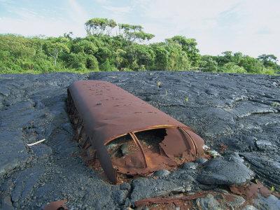 School Bus Near Kaimu Buried In The 1988 Basalt Lava Flows Big
