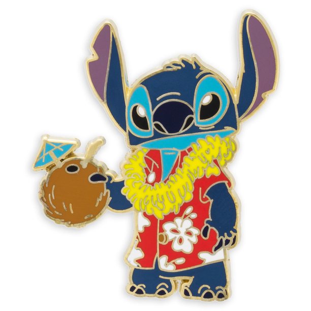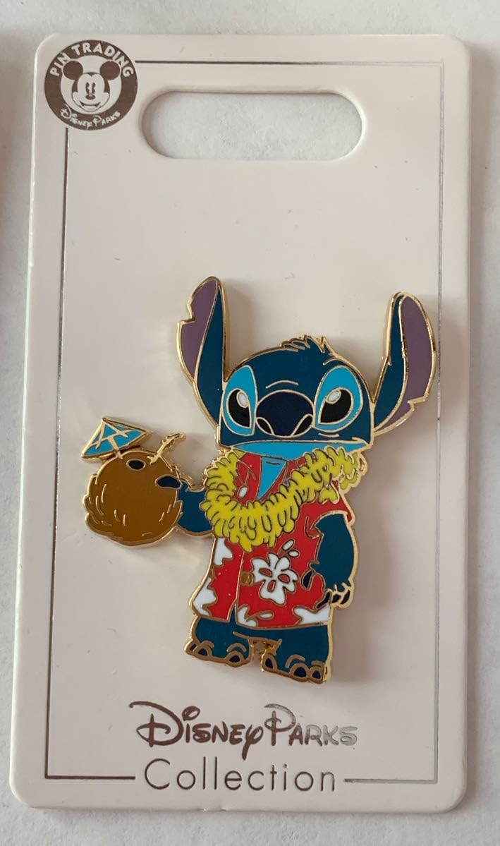 Disney Stitch Aloha Holding Coconut Drink Wearing Red Hawaiian