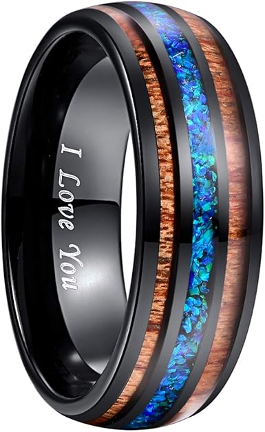 Nuncad Men S 8mm Tungsten Carbide Ring Blue Opal And Koa Wood www.amazon.com